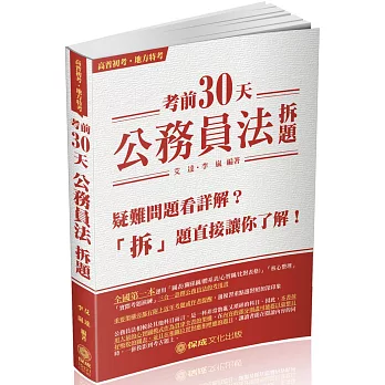 博客來精選推薦考前30天-公務員法-拆題-2018高普初考.地方特考(二版)
